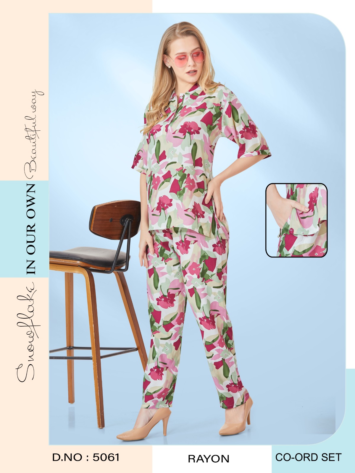 Womy Rayon Co Ord Set 3/4th Sleeves 5061 is designed for women who desire both comfort and elegance in their sleepwear. This collection combines luxurious fabrics with flattering designs to create the perfect balance between style and relaxation. Whether you’re winding down after a long day or spending a cozy morning at home, Womy’s sleepwear ensures you feel comfortable and stylish all the time.