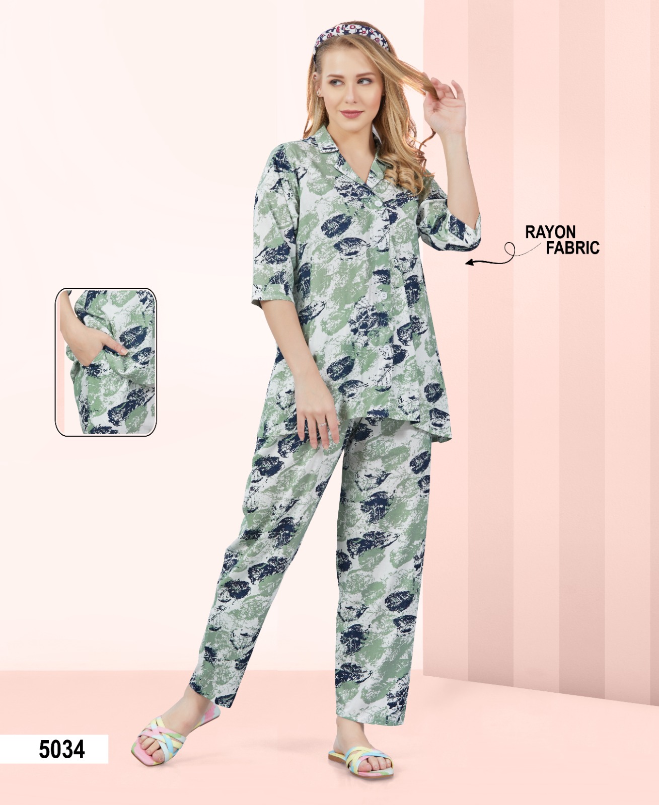 Womy Rayon Co Ord Set 5034 is designed for women who desire both comfort and elegance in their sleepwear. This collection combines luxurious fabrics with flattering designs to create the perfect balance between style and relaxation. Whether you’re winding down after a long day or spending a cozy morning at home, Womy’s sleepwear ensures you feel comfortable and stylish all the time.