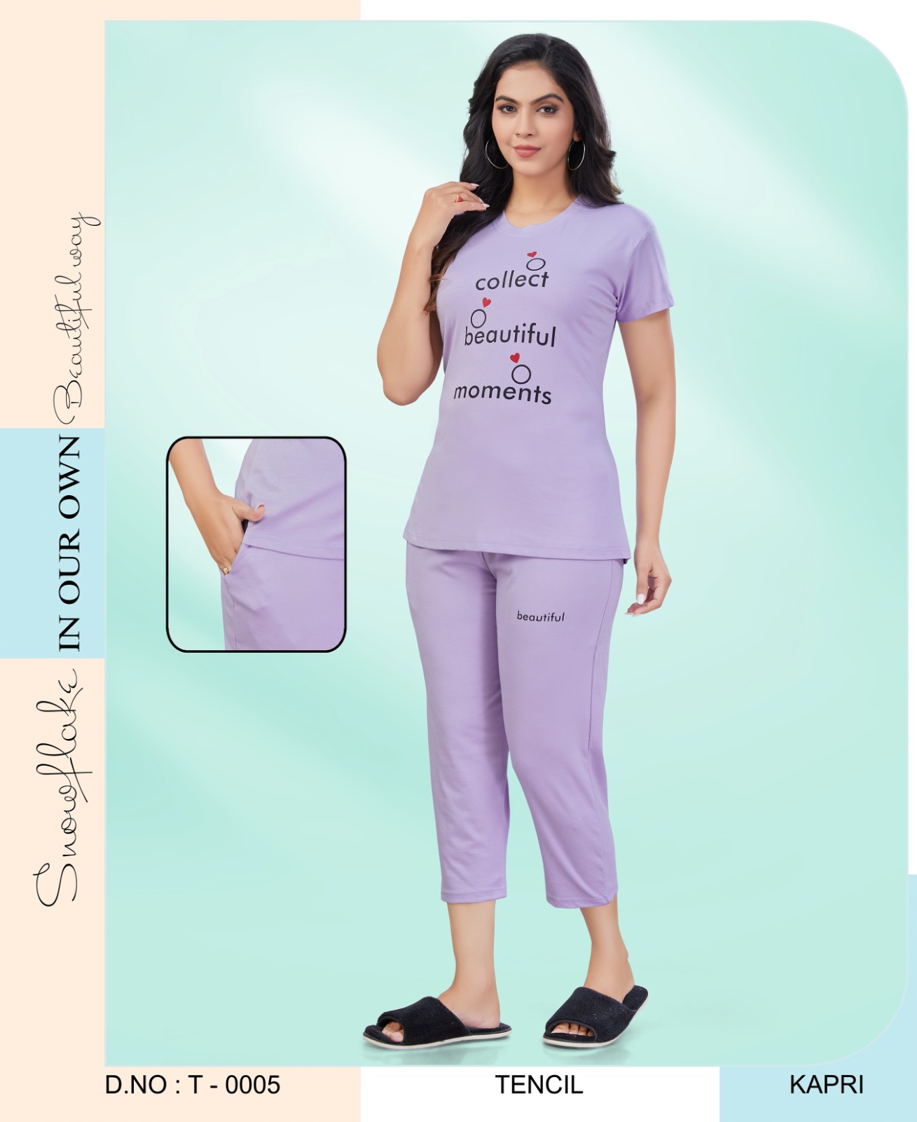 Womy Tencel Tshirt And Kaperi 0005 is designed for women who desire both comfort and elegance in their sleepwear. This collection combines luxurious fabrics with flattering designs to create the perfect balance between style and relaxation. Whether you’re winding down after a long day or spending a cozy morning at home, Womy’s sleepwear ensures you feel comfortable and stylish all the time.
