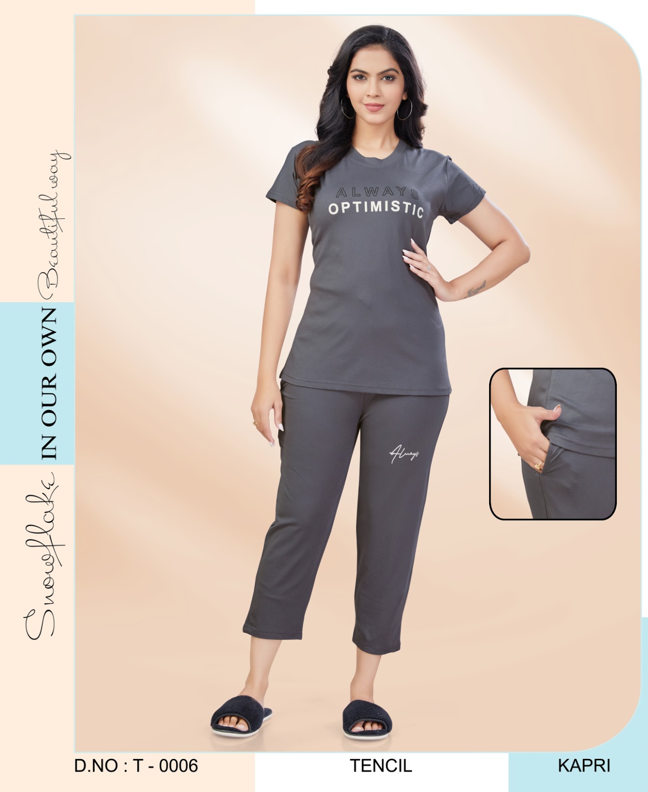 Womy Tencel Tshirt And Kaperi 0006 is designed for women who desire both comfort and elegance in their sleepwear. This collection combines luxurious fabrics with flattering designs to create the perfect balance between style and relaxation. Whether you’re winding down after a long day or spending a cozy morning at home, Womy’s sleepwear ensures you feel comfortable and stylish all the time.