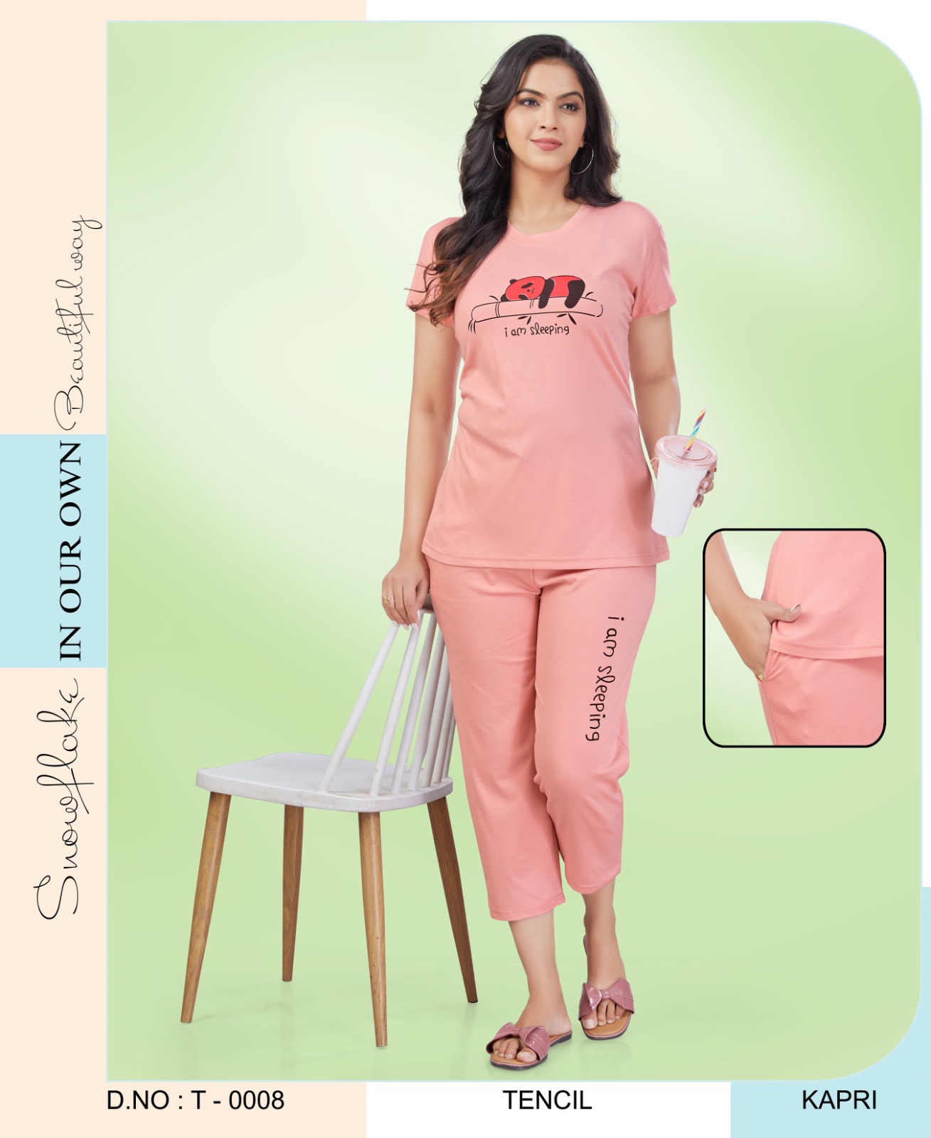 Womy Tencel Tshirt And Kaperi 0008 is designed for women who desire both comfort and elegance in their sleepwear. This collection combines luxurious fabrics with flattering designs to create the perfect balance between style and relaxation. Whether you’re winding down after a long day or spending a cozy morning at home, Womy’s sleepwear ensures you feel comfortable and stylish all the time.